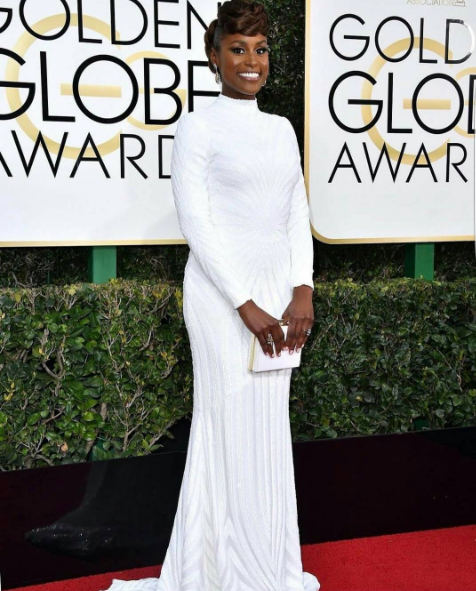 Issa Rae stuns in a white beaded Christian Siriano dress.