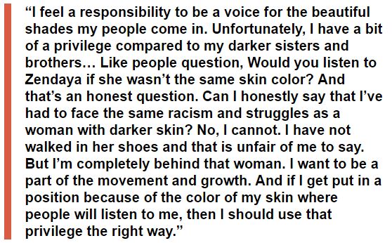 Finally, a celebrity publicly address the issue of colorism! By finally, we mean addressing it in it's completeness, acknowledging that it exists, and that it comes from someone who hasn't really experienced the short end of the stick when it comes to this topic. While it's no secret that the entertainment industry tends to favor lighter-skinned women for gigs, celebrities tread lightly when it comes to acknowledging the issue openly. We're a little late on this one (JUST opened our June Cosmopolitan subscription for June), but we had to share this. Nonetheless, thank you, Zendaya! In her June Cosmopolitan interview, she addresses this very sensitive topic: